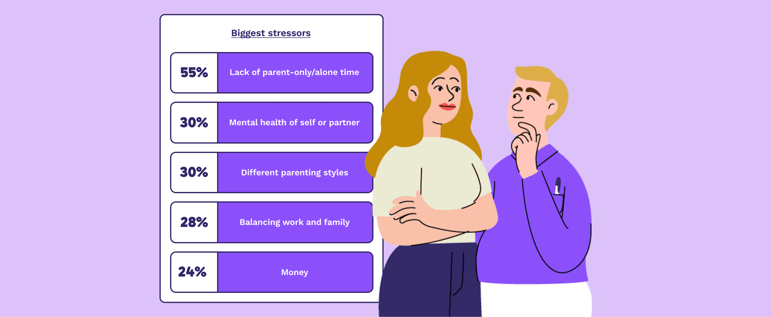 Our survey revealed that 55% of parents mentioned a lack of parent-only time as a significant cause of relationship dissatisfaction.