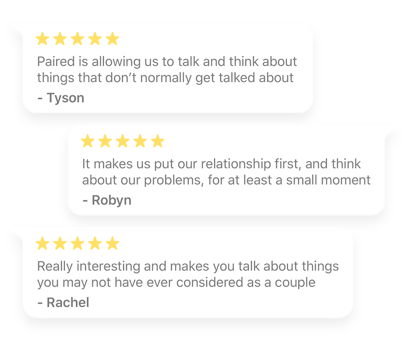 Paired is used by tens of thousands of couples on a daily basis to build healthy relationship habits.
